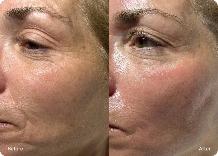 Skin looks smoother, brighter, and more lifted — with fine lines softened and a healthier glow revealed.