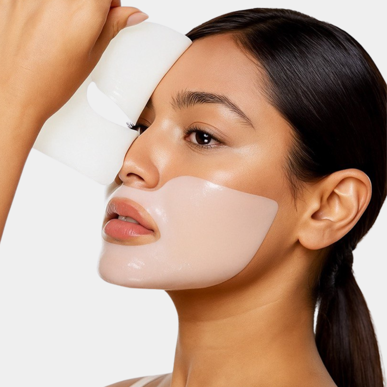 A 3D lifting hydrogel mask engineered for superior adhesion and performance — delivering active peptides, niacinamide, and botanical extracts deep into the skin for an instant firming and glass-skin finish.