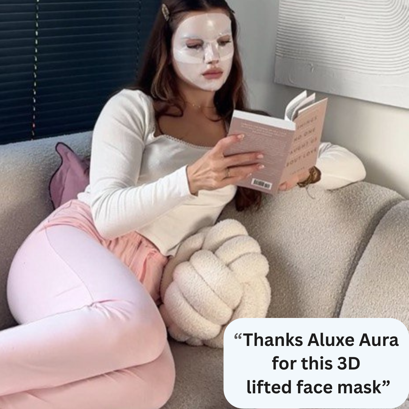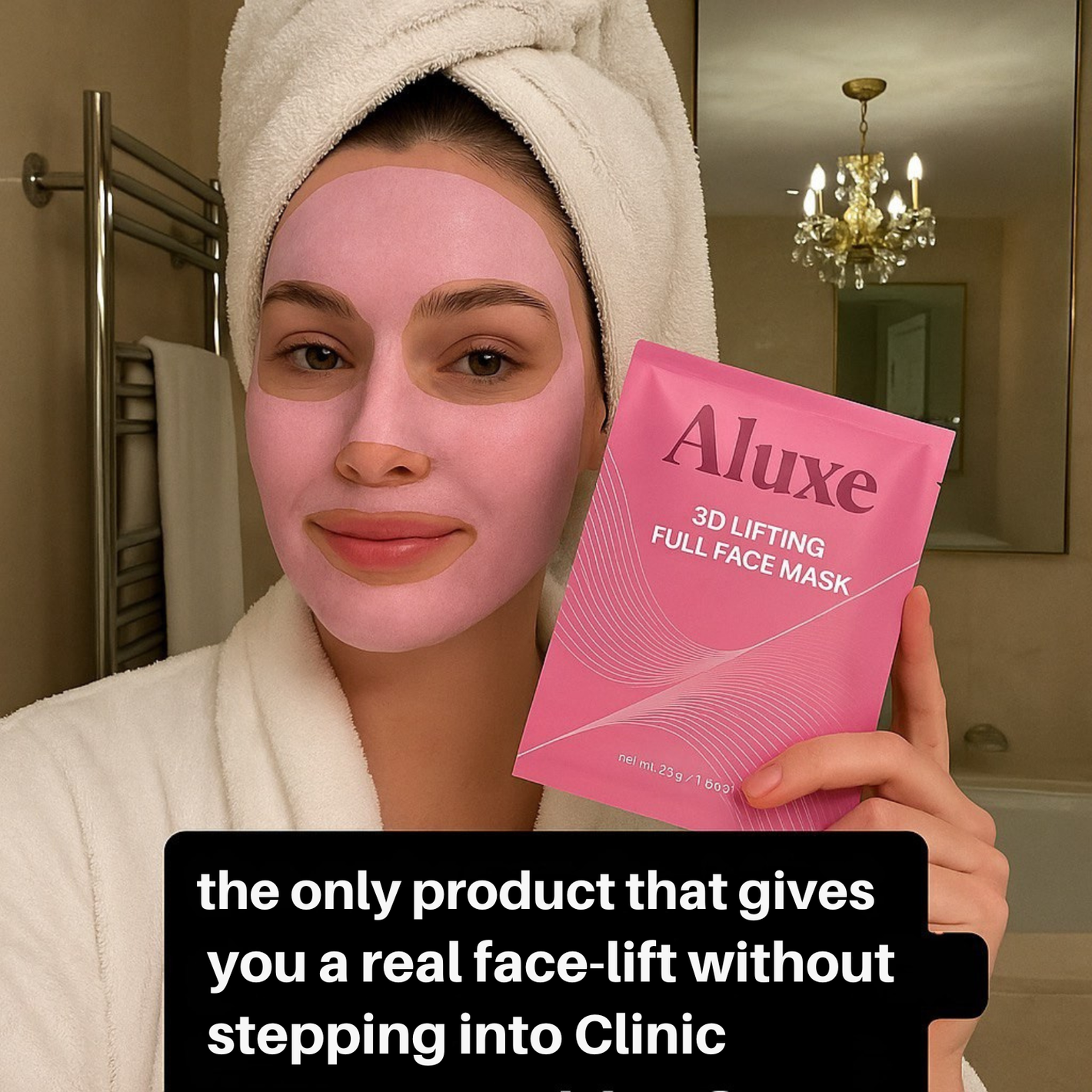 Apply the Aluxe 3D Mask, sculpting it to fit every angle and curve of your face.