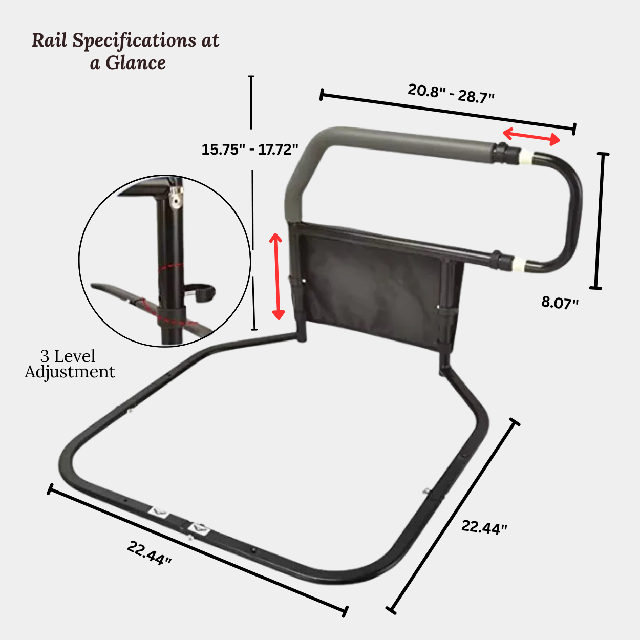 Designed to fit most beds with ease, this rail combines strength and convenience. Check the measurements below to ensure a secure and comfortable bedside setup.